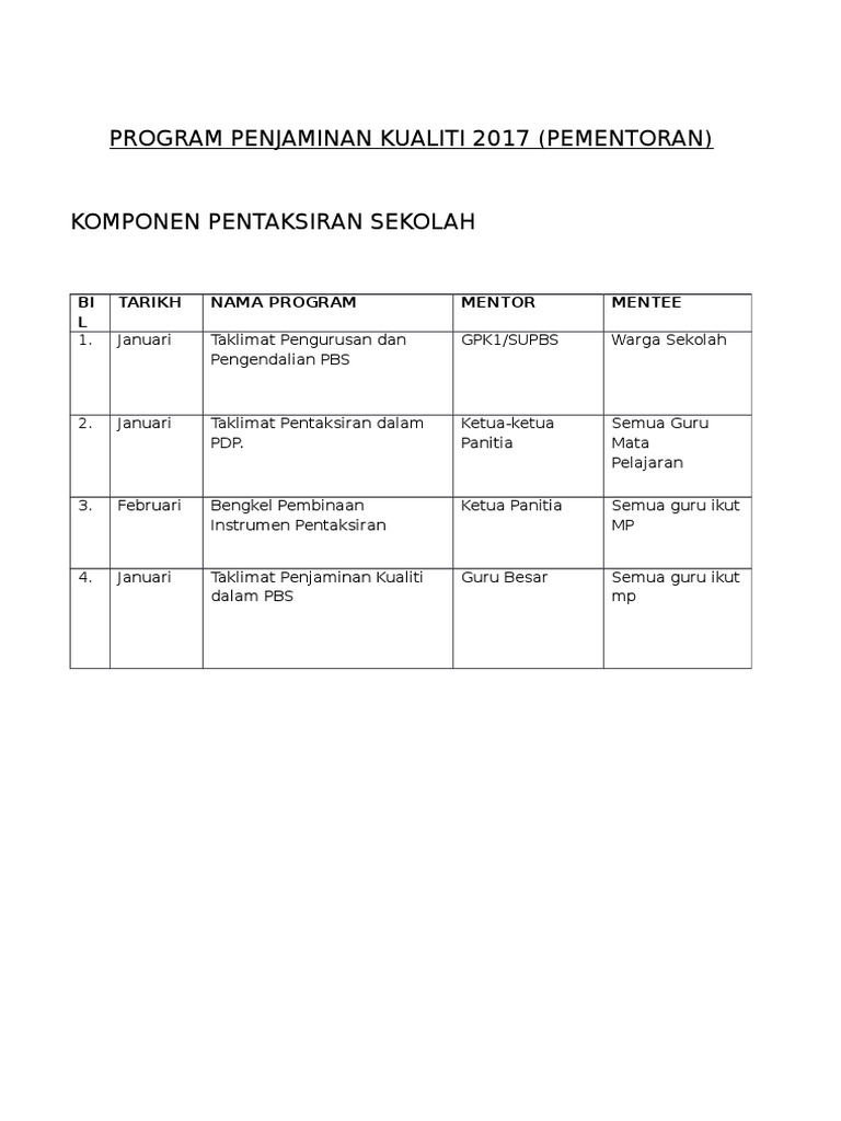 Borang Penjaminan Kualiti Pbs / Pentaksiran pusat 2014 pengopersian penjaminan kualiti.. Penyediaan borang ini adalah tanggungjawab guru pentaksir sesuatu subjek itu sendiri. Pementoran dalam konteks pentaksiran berasaskan sekolah (pbs) adalah satu. Instrumen a maklumat asas sekolah instrumen b pengurusan dan penjaminan kualiti pbs Buku 3b (borang unit pengelola) 3. Tiga pajsk pentaksiran aktiviti jasmani, sukan dan kokurikulum pbs pentaksiran berasaskan sekolah pibg persatuan ibu bapa dan guru ppk panduan penjaminan kualiti ppmr.