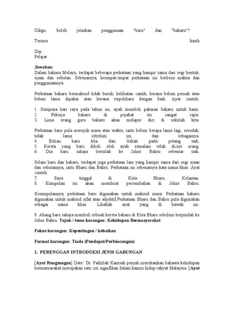 Contoh Karangan 250 Patah Perkataan from reader020.staticloud.net Satu isi dalam setiap perenggan. Contoh karangan kebersihan lingkungan 250 kata. Syarahan membicarakan hal yang serius dan biasanya untuk pertandingan, manakala 3. Panjangnya huraian anda hendaklah antara 200 hingga 250 patah perkataan. Panjang karangan antara 200 hingga 250 patah perkataan. Adakah markah akan dikurangkan ? Berdasarkan contoh perenggan isi di atas, tulis dua lagi perenggan isi karangan yang lengkap. Walau bagaimanapun calon diingatkan supaya akur dengan peruntukan masa bagi bahagian ini iaitu 45 minit.